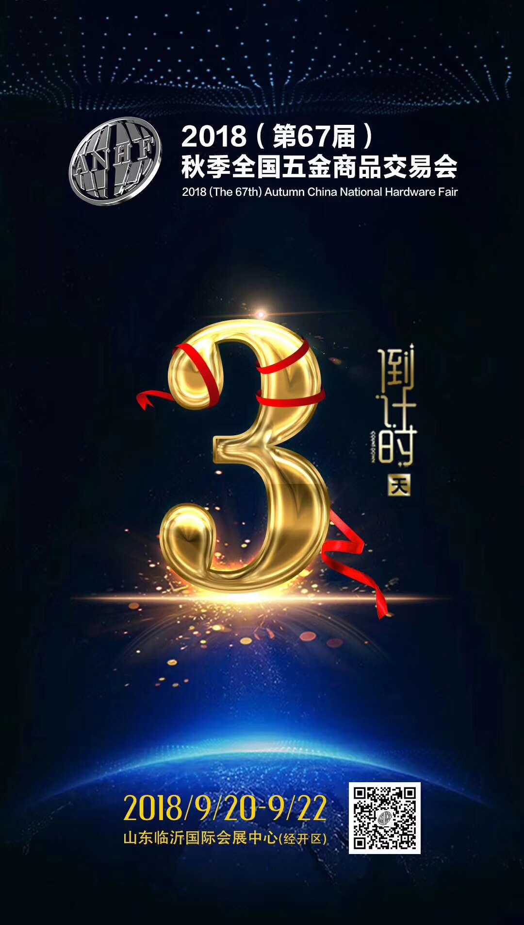 2018第67届秋季全国五金商品交易会 即将启幕!国内第四大,江北第一大专业五金展会,2018第67届秋季全国五金商品交易会,2018/09/20-22日,中国·临沂国际会展中心,展位60000平米,957家优秀五金企业,折合2782个展位,倒计时3天。