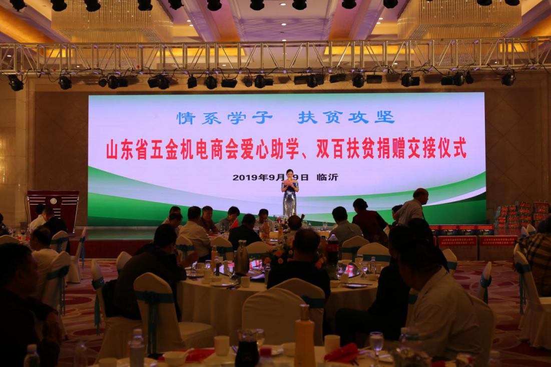 山东省五金机电商会爱心助学、双百扶贫捐赠仪式在临沂举行山东省五金机电商会爱心助学、双百扶贫捐赠仪式在临沂举行为贯彻落实党中央和山东省关于脱贫攻坚指示精神,积极响应山东省民政厅、山东省工商联双百扶贫行动号召。9月19日,山东省五金机电商会在临沂蓝海饭店举行。