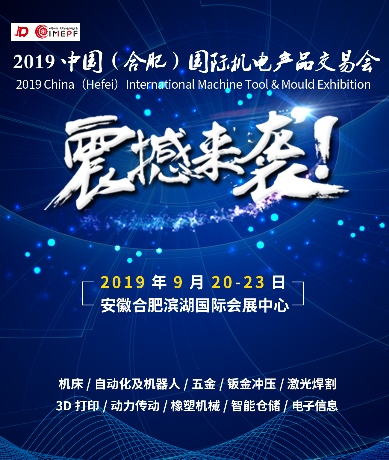 2019中国合肥国际机电产品交易会9月震撼来袭!招商火热进行中!为期4天的2019中国(合肥)国际机电产品交易会(简称“2019机交会”)将于9月20日-23日在安徽合肥滨湖国际会展中心精彩绽放。本次盛会由中国机电产品交易网、中国机电产品流通协会、安徽省机电行业协会、安徽省国际商...